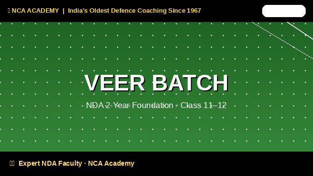 NCA Academy’s VEER BATCH is a comprehensive 2-year foundation programme for Class 11 and 12 students aspiring to join the National Defence Academy. Starting from the absolute basics, this programme builds the academic and personality foundation required to clear NDA written exam and SSB interview.